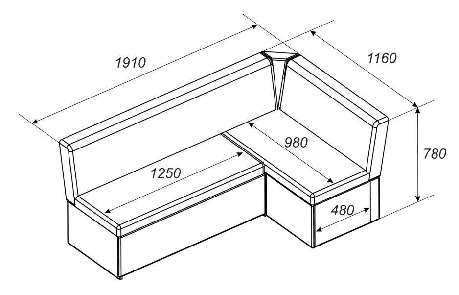в первую очередь, прорисовывается эскиз, на котором обязательно указывают длину двух половинок дивана, его глубину и высоту спинки (этот параметр может быть произвольным);