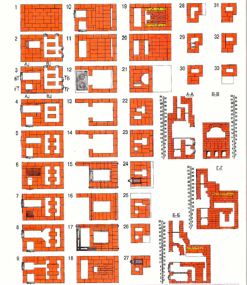 Есть несколько видов кирпича, которые могут использоваться во время строительства прибора: