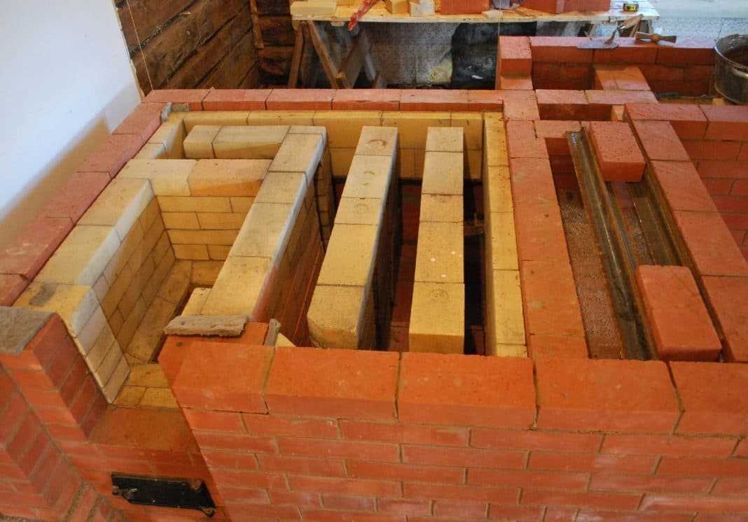 На седьмом-восьмом уровнях устанавливается топочная дверца. В задней стенке камеры устанавливаются кирпичи со скошенными торцами (чтобы улучшить тягу).