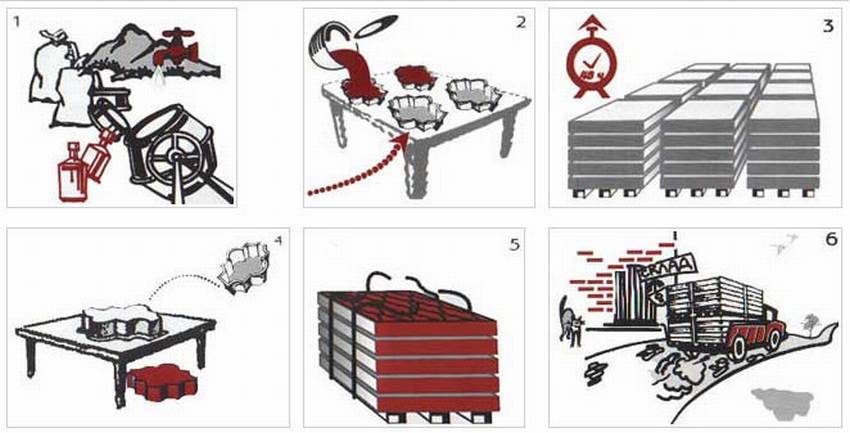 У каждого из способов имеются свои особенности. Общим является то, что оба способа основаны на смешивании компонентов в определенных пропорциях: цемента, песка и немного воды. Цемент зачастую используют высоких марок (450; 600) для ее изготовления. Происходит это на специальных вибростолах.