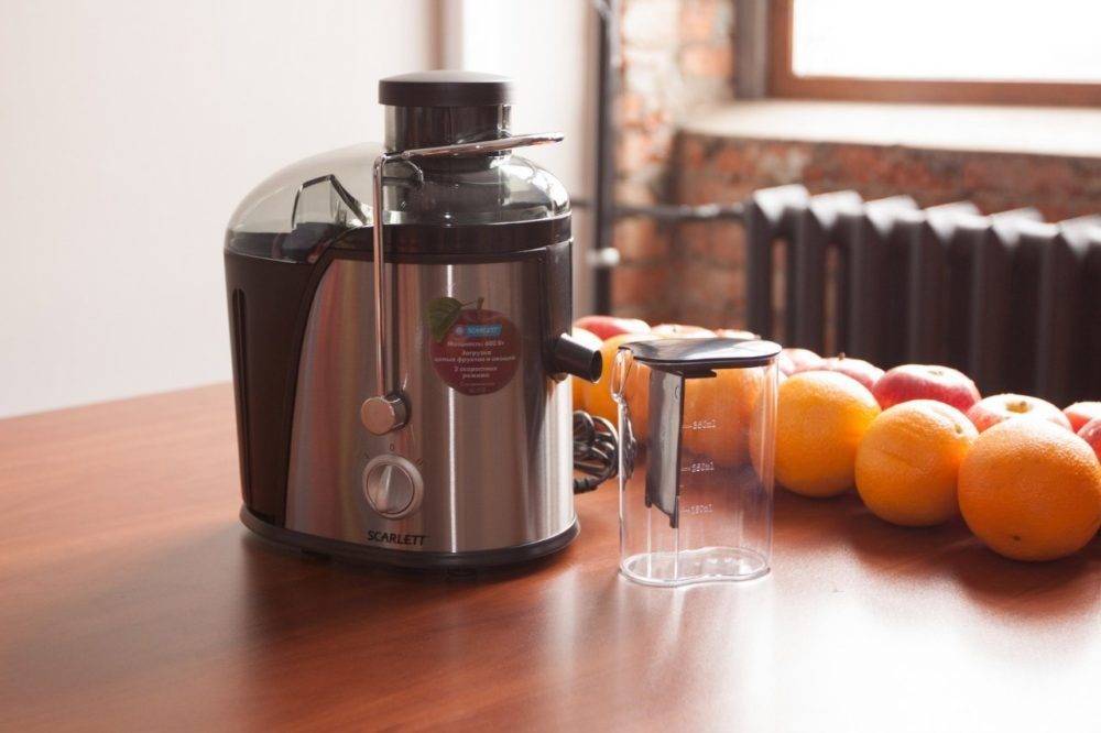 - Соковыжималки Scarlett. Имеют объём 1-1,6 л, мощность 400-900 Вт, отверстия загрузки 63-75 мм. У некоторых моделей есть сепаратор для пены и две скорости.