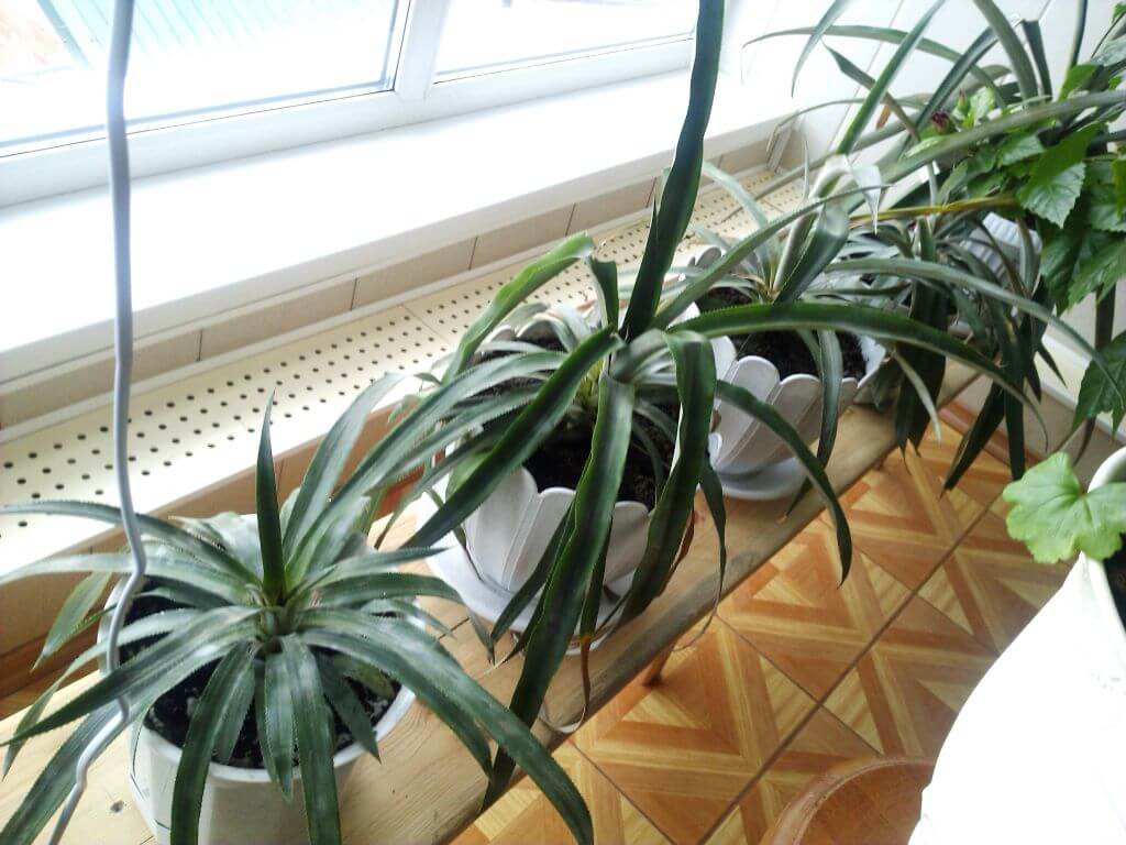 Почти через месяц появляются корешки и питомца помещают в небольшой цветочный горшок с грунтом. Еще пара месяцев и ананас укоренится на новом месте основательно.