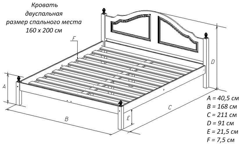 Перед тем как своими руками сделать кровать, необходимо составить чертеж. Требуется тщательно провести расчеты и замеры. Обязательно нужно учитывать вес и рост людей, для которых изготавливается мебель. От этого зависит ее длина, а также тип – одинарный, полуторный или двуспальный.