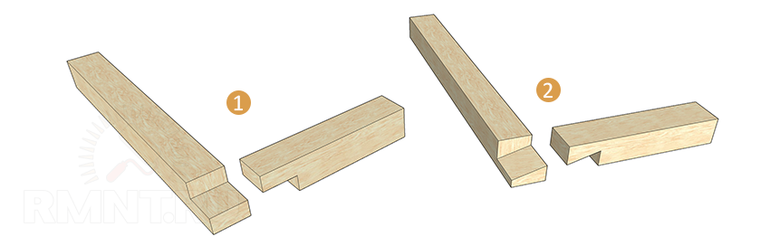 1 — соединение «вполдерева»; 2 — соединение «в лапу»