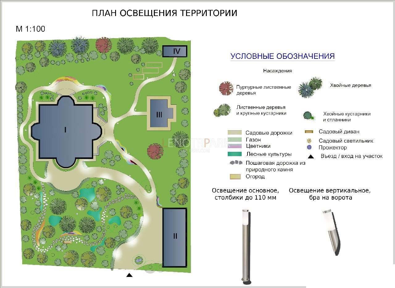 Начинают работу с подготовки траншей. Заранее составляете схему расположения всех светильников на своем участке.