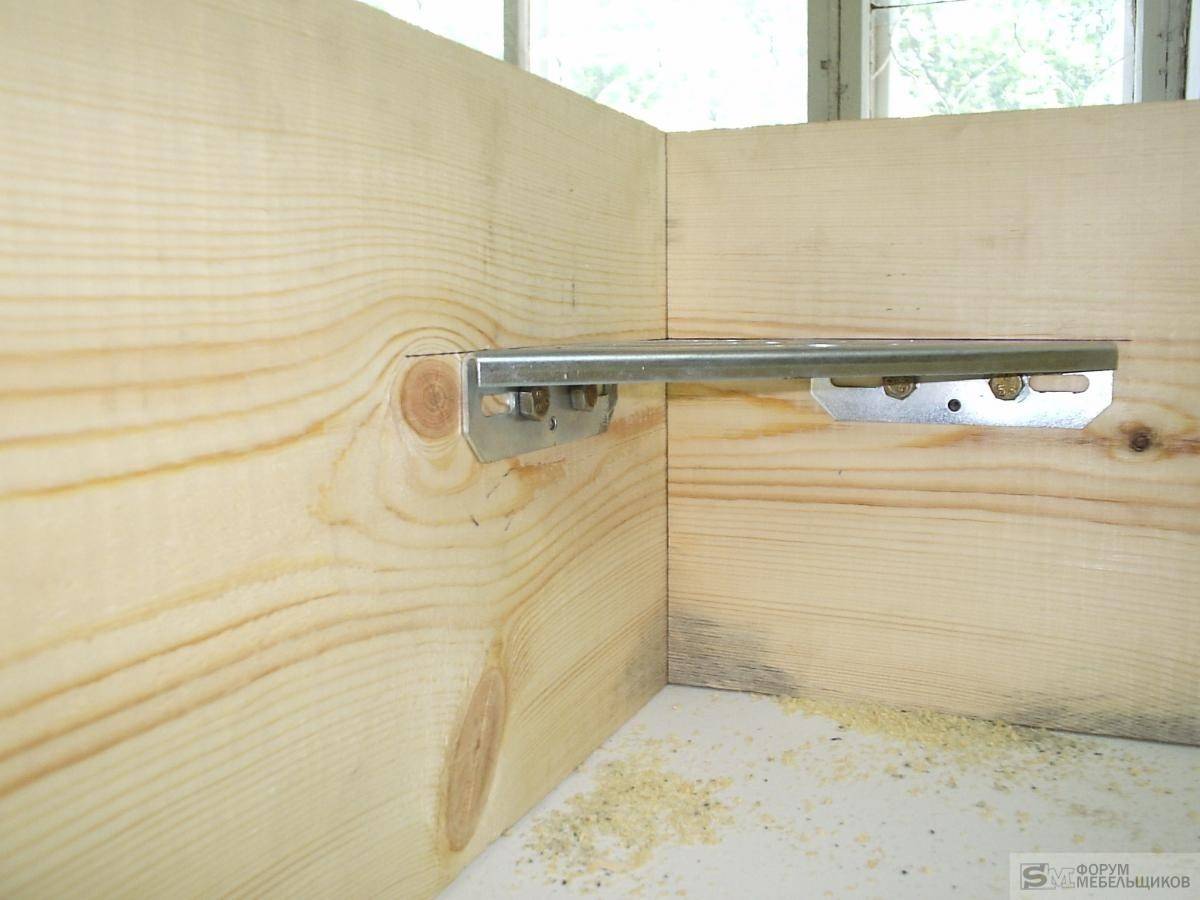 - Соберите верхний ряд опорных уголков с продольной перегородкой. Завершив этот шаг, приготовитесь к самому трудоемкому моменту данного процесса – сборке подъемного механизма.