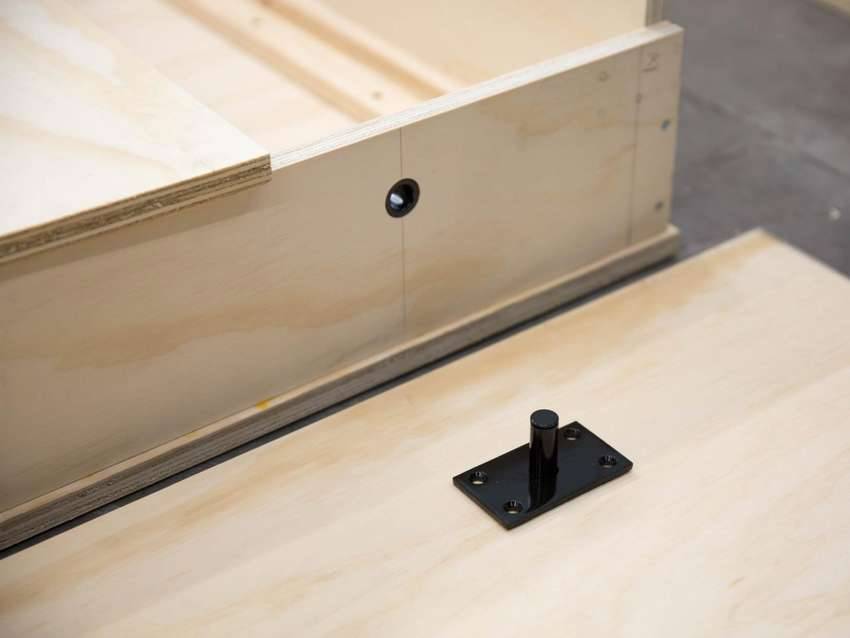 Начинайте сборку с каркаса, затем изголовье и дополнительные ящики. Все выдвижные ящики монтируются специальными металлическими петлями. Для увеличения прочности конструкции можно добавить укрепления дополнительными болтами.