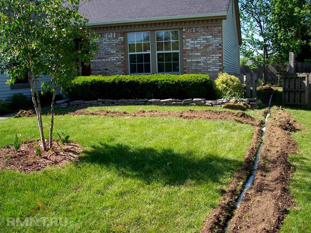 Дренирование участка — вопрос особый, ведь с необходимостью осушения сталкиваются и те проекты, в которых верховодка никогда не опускается ниже глубины залегания ЛОС. В таких ситуациях без дренажной системы попросту не обойтись, ведь утяжеление септика может спровоцировать совершенно обратный эффект — всасывание в грунт. Впрочем, временные каналы можно использовать и для прокладки стационарной системы дренажных труб.