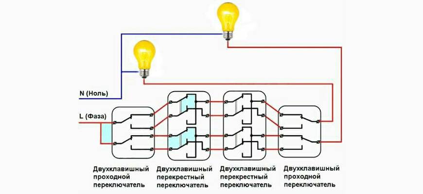 Порядок монтажа схемы с двухклавишными проходными выключателями