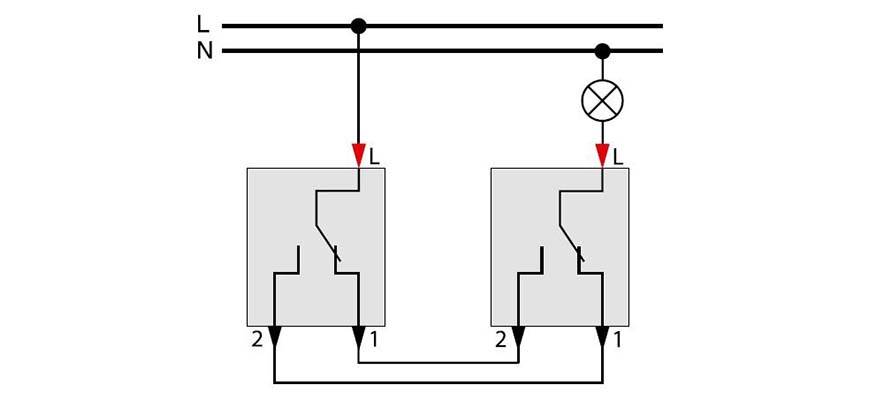 Такие выключатели должны устанавливаться только попарно, что обеспечивает очередность коммутации осветительной линии с двух удаленных на значительные расстояния точек.
