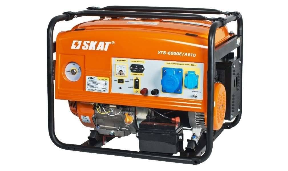 Одна из автоматических моделей — SKAT УГБ-6000Е/ATS, который отличается экономичным расходом топлива (2.5 л в час), высокой мощностью (6-6.5 кВт) и рассчитан на 10 часов безостановочной работы. Кроме автозапуска, производителем предусмотрены электрический и ручной старт.