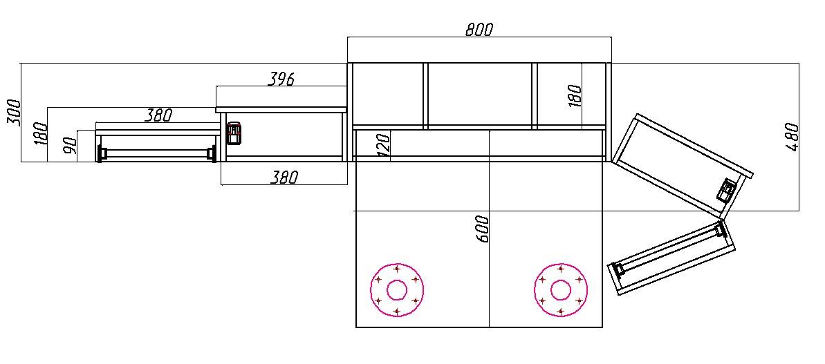 Глубина шкафа для рукоделия со складывающимся принципом трансформера обычно рассчитывается так: 300-350 задается для неподвижного корпуса и порядка 100-180мм для фасадов с полками.