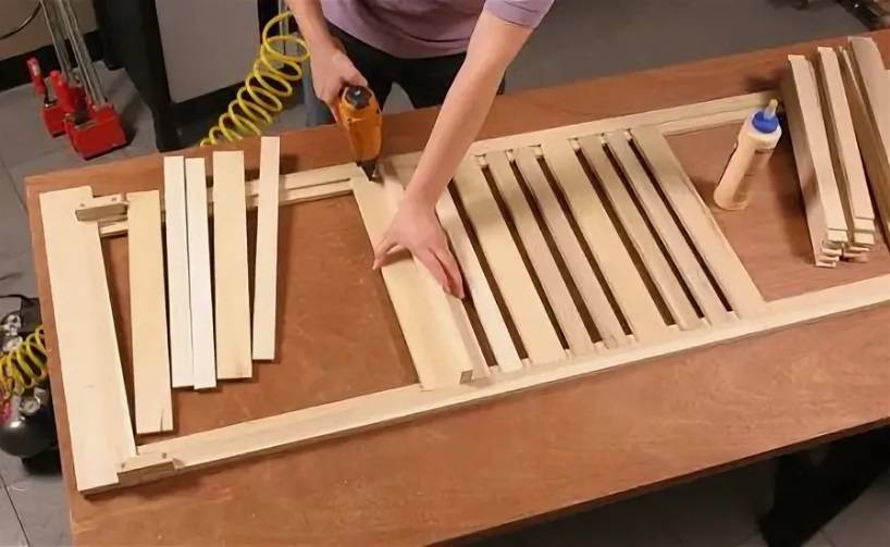 Можно изготовить жалюзийные двери своими руками. Но для этого потребуются столярные навыки или опыт работы с металлом. Главная сложность будет подстерегать при сборке решетки.
