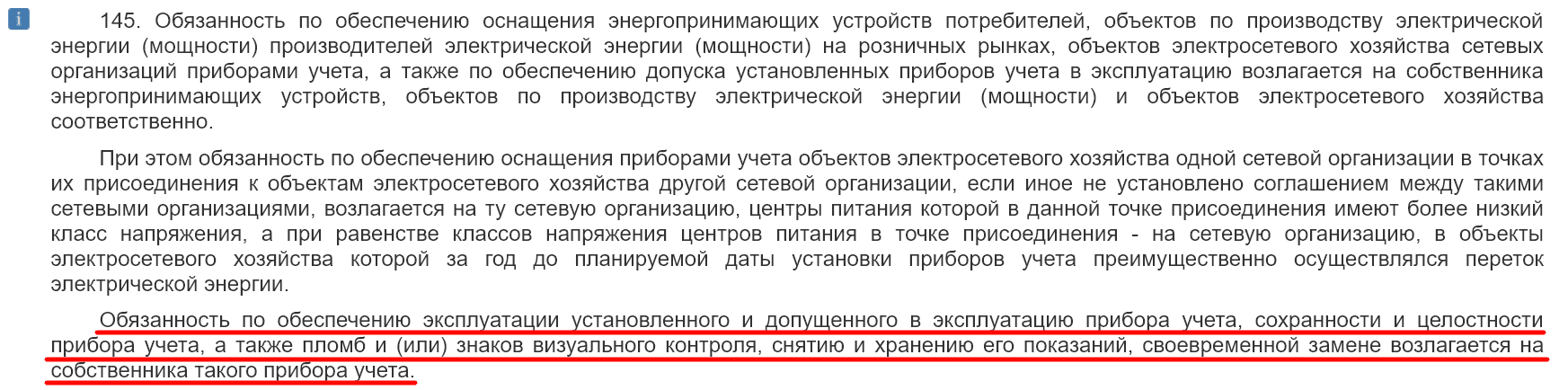 До недавнего времени ответственность за замену электросчетчика возлагалась на собственника. Однако с 1 июля 2020 года вступило в силу Постановление Правительства №554 от 18.04.2020 г. «О внесении изменений в некоторые акты Правительства Российской Федерации по вопросам совершенствования организации учета электрической энергии».