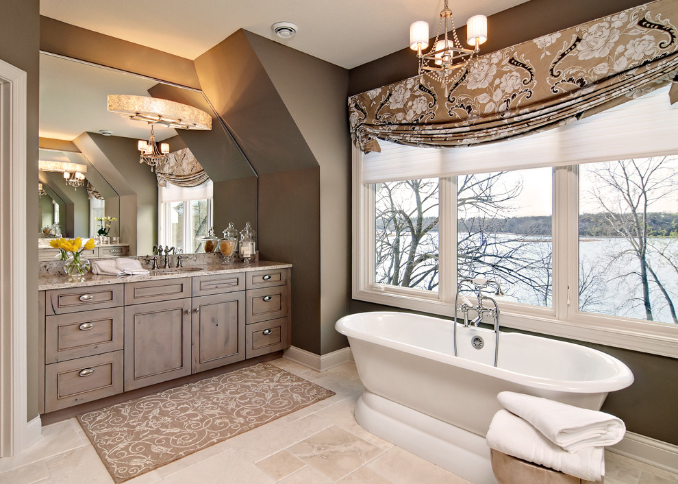 В классических и ретро интерьерах прекрасно смотрятся бронзовые и латунные обвязки. Выглядят они очень элегантно и аккуратно, что особенно ценно, когда ванна стоит по центру комнаты
