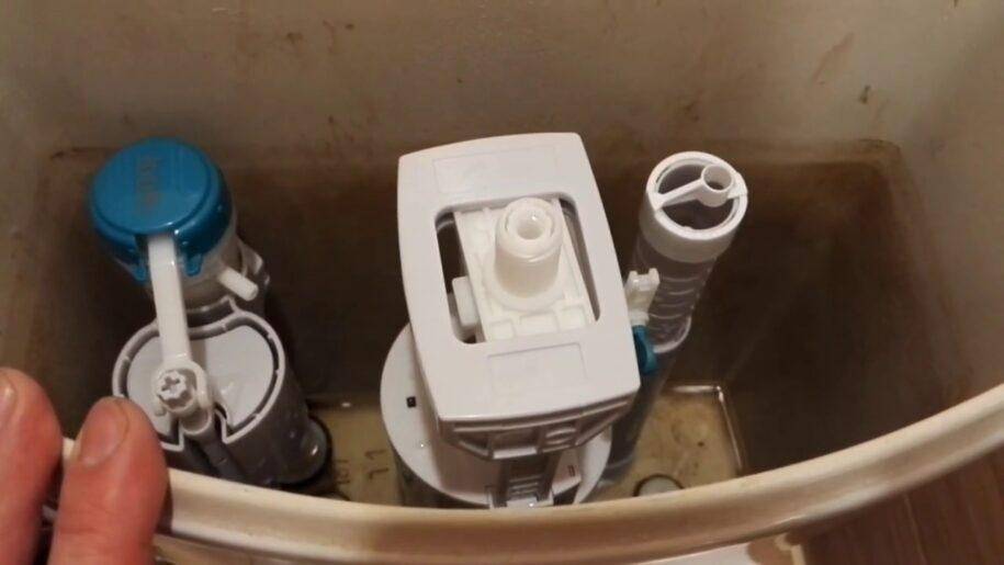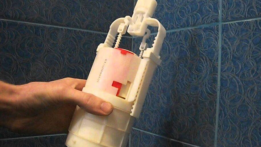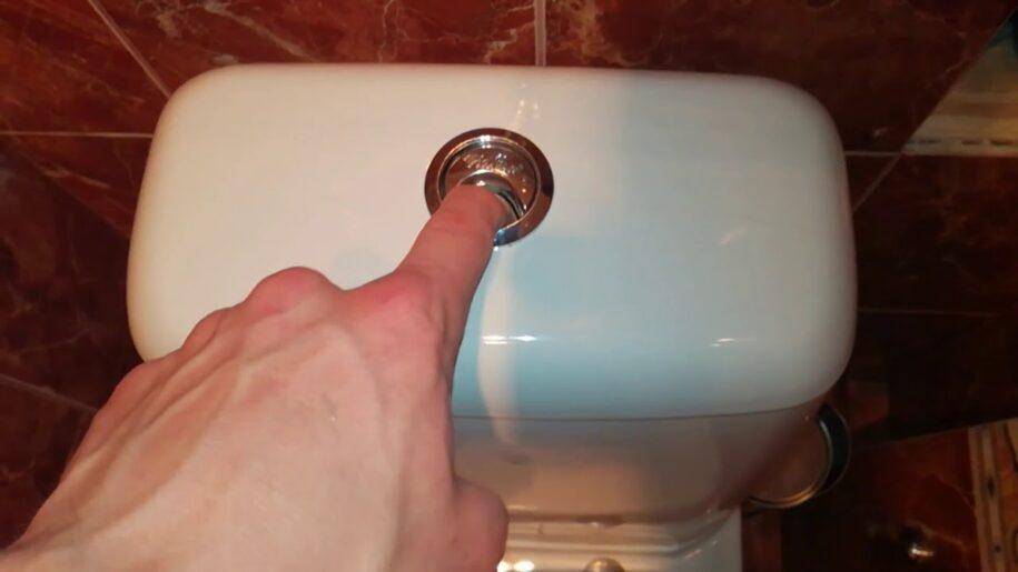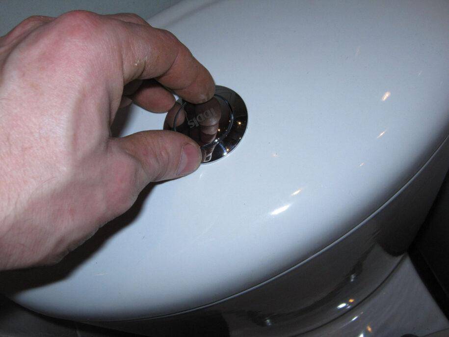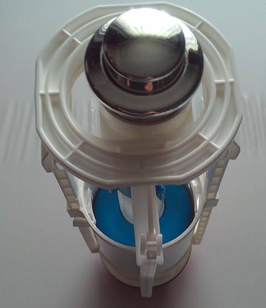 Унитазы старых моделей сбоку или сверху сливного бачка имели рычаг. Современные модели оснащены кнопкой, которая делает управление более удобным, а внешний вид изделия более привлекательным. Механизм с кнопкой предполагает при ее нажатии полный слив воды из бачка или опустошение наполовину. Работает механизм по следующей схеме: нажатие на кнопку или рычаг приводит в работу заслонку, которой закрыт верхний штуцер, и вода сливается в чашу унитаза. После этого под действием своего веса заслонка возвращается в исходное положение и закрывает клапан слива.