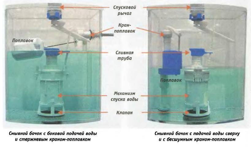 Один обеспечивает подвод и перекрытие подаваемой воды в момент, когда она наполняет емкость до нужного уровня, а второй предназначен для непосредственно слива накопленной влаги в чашу.