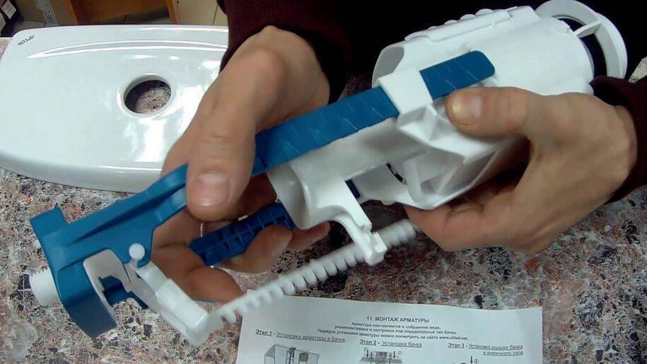 - некачественные материалы приведут к деформации пластмассы, из которой сделаны элементы арматуры, что приведёт к появлению сбоев. Решение – замена арматуры унитаза на новую;