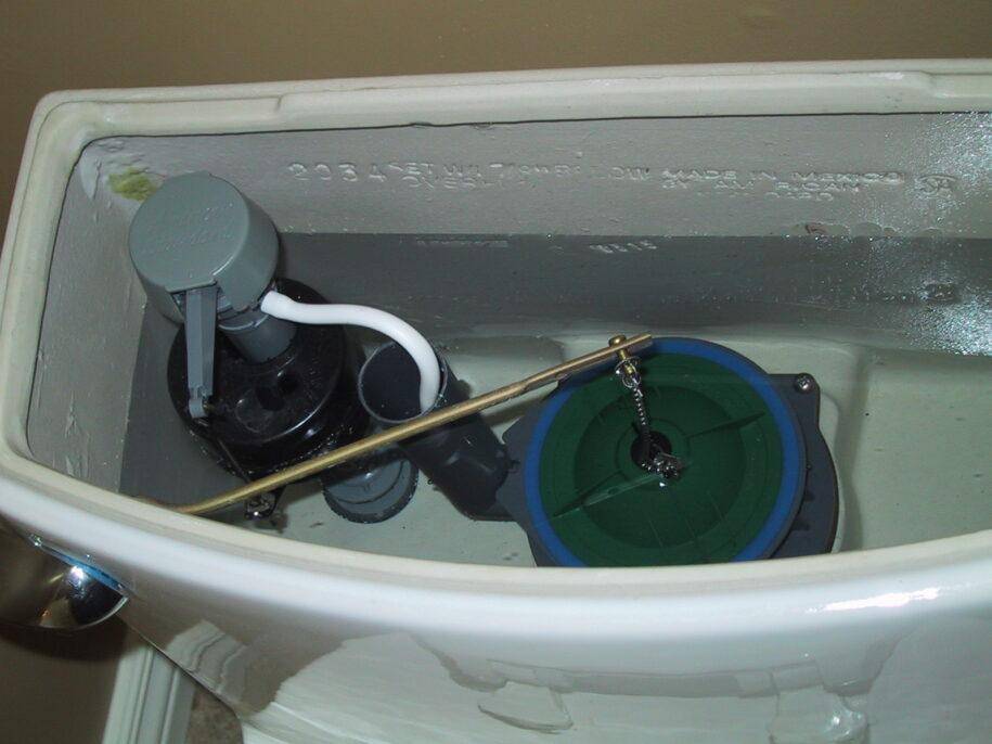 Запорный клапан бачка. Чаще всего запорный клапан бачка представляет собой пластиковый клапан с резиновой окантовкой, который закрывает горловину бачка и под давлением воды запирает течение воды. Чаще всего начинает подтекать именно сливная горловина бачка, и проблему нужно искать либо в прокладке горловины, либо в окантовке клапана.