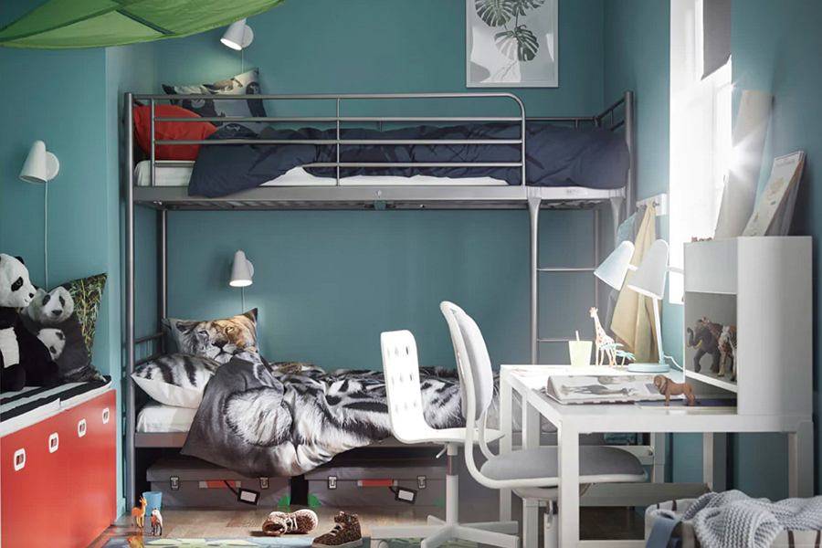 МДФ — это цельные плиты из древесных волокон, они считаются безопасными. Производители окрашивают листы в разные цвета, и вы сможете подобрать мебель как для мальчиков, так и для девочек.