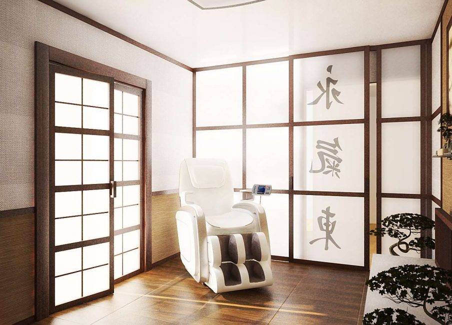 Традиционное жилье японцев очень отличается от европейского жилого помещения. Там нет тяжелых и массивных стен.Зонирование помещения производится при помощи мобильных перегородок-ширм, выполненных из тонкой рисовой бумаги. Сегодня такие ширмы можно использовать для оформления спальни в восточном стиле или для разделения комнаты на несколько отдельных уголков, например, для чтения или сна.