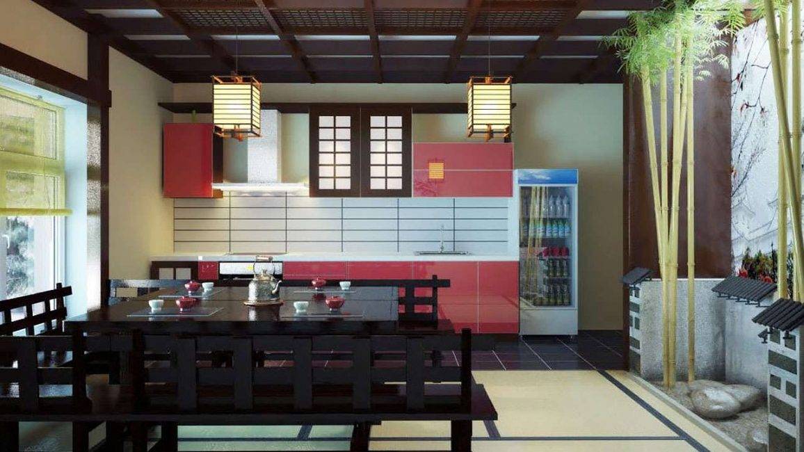 Кухни жителей Японии очень похожи на российские: у них ограниченная площадь, пространства зачастую не хватает. А интерьер в японском стиле позволяет рационально использовать небольшую площадь помещения. При этом комната не кажется загроможденной, все сделано компактно для удобства приготовления пищи. Предметы мебели отличаются высокой функциональностью.