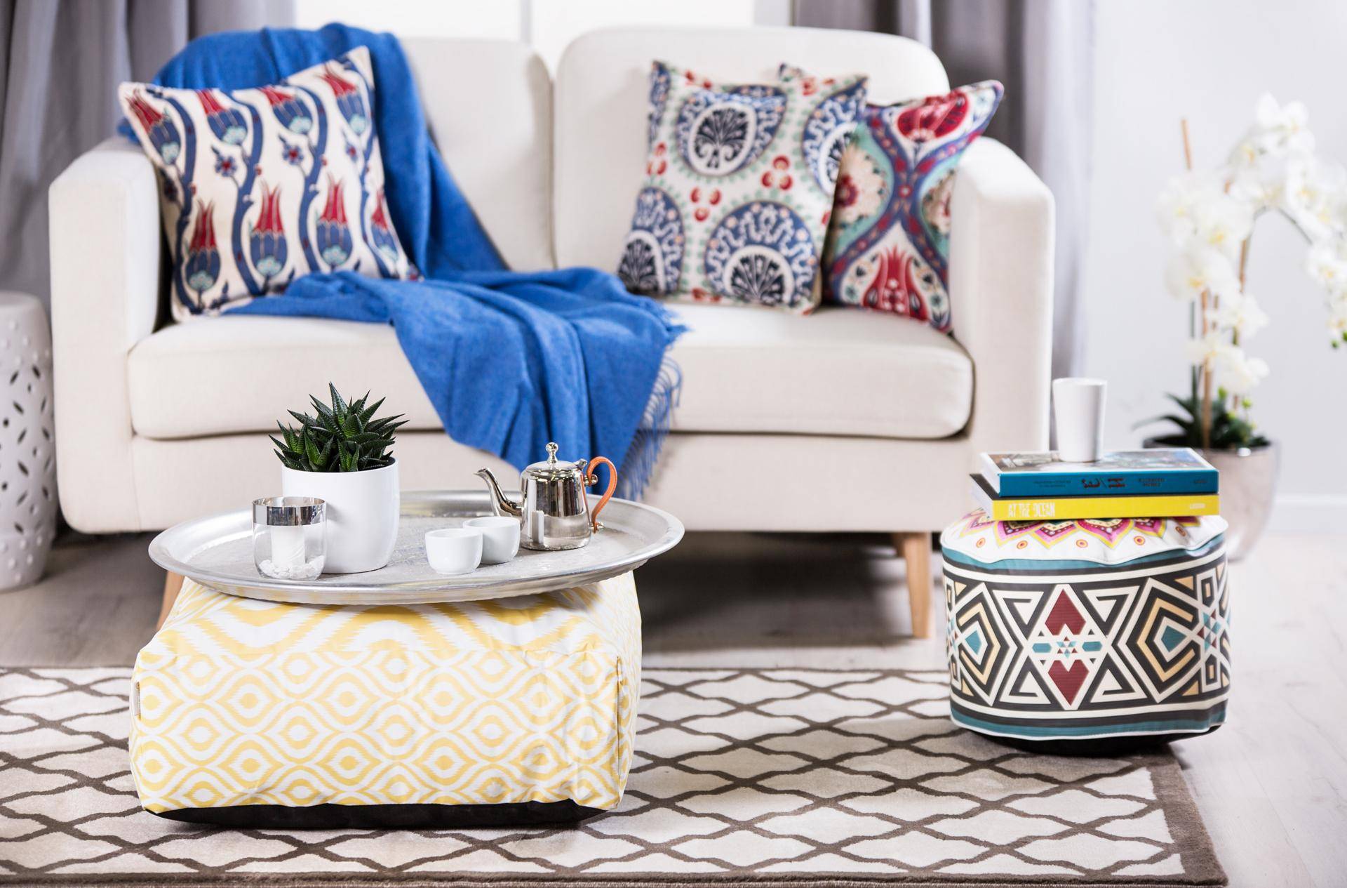 Стильные пуфики для гостиной в стиле бохо