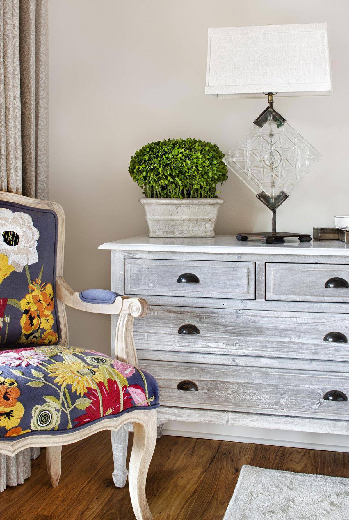 Чтобы придать дизайну узнаваемость, достаточно пары винтажных предметов. К примеру, можно установить в спальне старинный комод, шкаф для одежды с полировкой или кресла, обитые тканью, с замысловатыми по форме ножками.