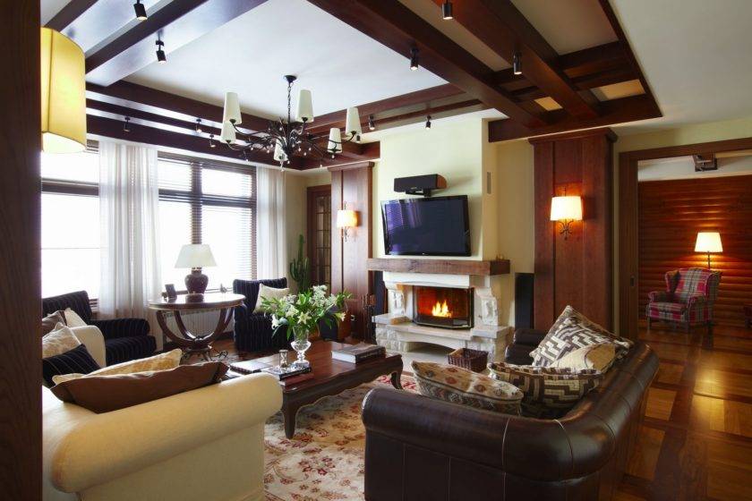 Особенность данного стиля – удачное сочетание разнообразных оформительских решений и объединение традиций мировых стран. Многообразие направлений вы можете увидеть на фото гостиной в стиле кантри.