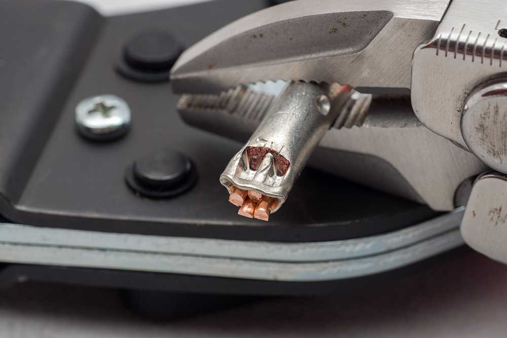 Для опрессовки проводов требуется специальная алюминиевая или медная гильза — она подбирается исходя из размеров скрутки (диаметра пучка), а материал берут тот же, что и у проводников. Оголенные и зачищенные до блеска провода скручиваются, на них надевается трубка-гильза, которая зажимается специальными клещами.