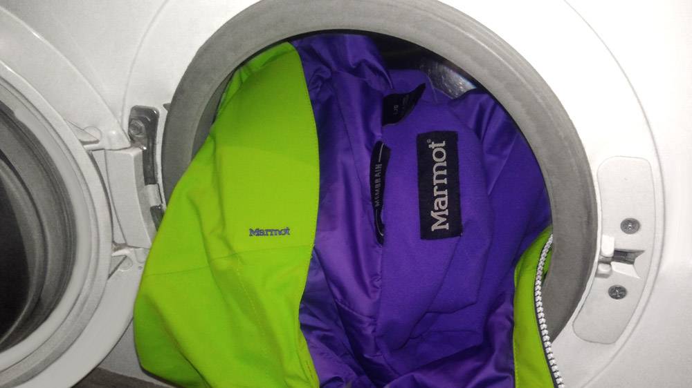 Можно заменить порошок на мыло, лучше детское. Мыло равномерно растворяют в растворе, а не намыливают всю куртку.