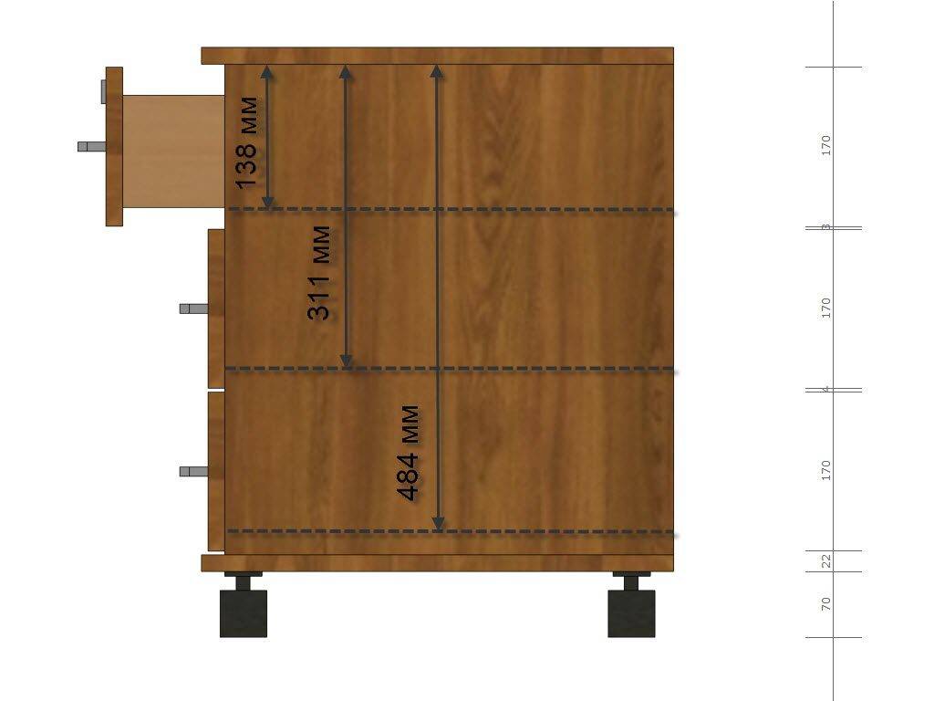 Чтобы ничего не пропустить, не запутаться во всех деталях и комплектующих, сборка тумбочки с выдвижными ящиками должна происходить в определенной последовательности. Начинать обычно принято с чертежа, чтобы в любой момент можно было к нему обратиться.