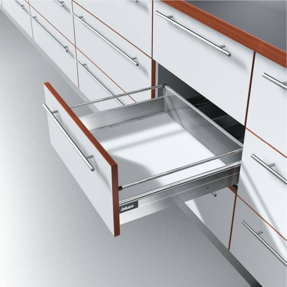 Для установки ящиков понадобится несколько направляющих. Они состоят из двух частей: первая (две направляющие) крепится с двух сторон по бокам ящика, и вторая (также 2 направляющие) крепится на каркас. Производится это с помощью шурупов, которые обычно идут в комплекте с направляющими и отвертки.