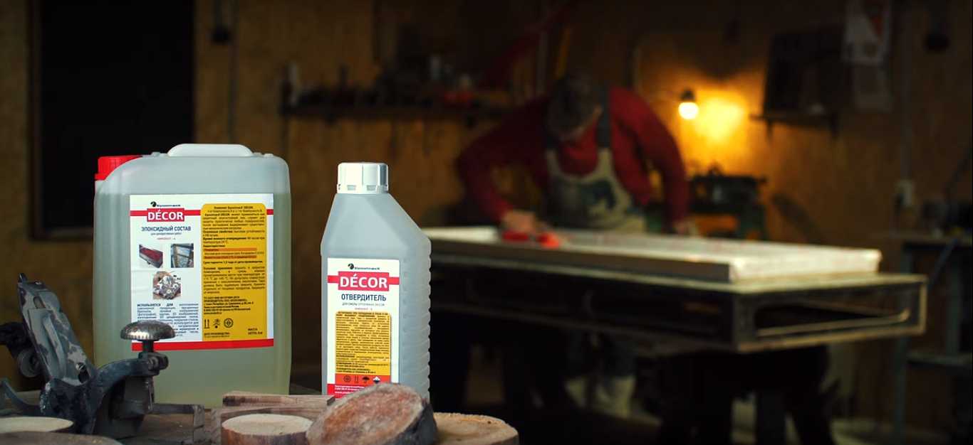 - EpoximaxX (Эпоксимакс) Decor. Один из наиболее популярных брендов. Реализуется в комплекте с отвердителем в пластиковых упаковках весом по 8 килограммов. Обладает прозрачным цветом, не изменяя его даже под влиянием прямых солнечных лучей. Полное отверждение наступает через двое суток. Застывание нестандартной заливки (толстые слои) предусматривает несколько больше времени.