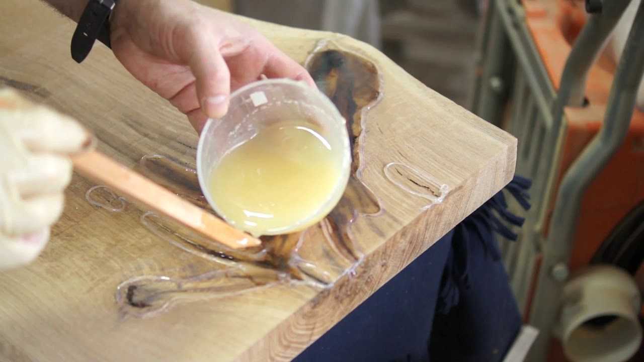 Далее, древесину следует прогрунтовать. Грунтовка древесины позволяет избежать чрезмерного впитывания дорогостоящей эпоксидной смолы, в деревянные элементы. Кроме того, чрезмерное впитывание эпоксидки в дерево, может привести к появлению ненужных пузырей. Которые могут испортить внешний вид изделия.