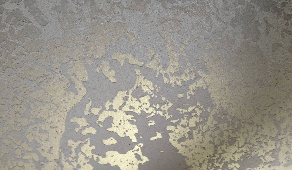 Потом стена покрывается слоем водоэмульсионной или акриловой краски, ее оставляют на три часа. Далее производится полировка металлическим шпателем, чтобы разгладить сильно выступающие пики. Часть краски тоже удаляется, обнажив базовый светлый слой. В результате получается яркий цветочный узор.