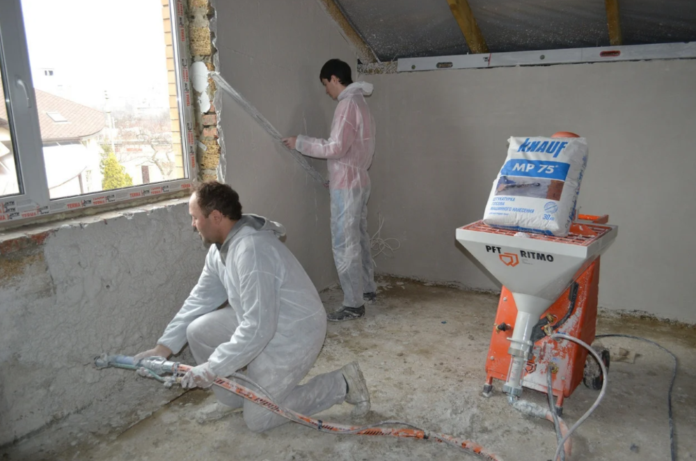 Рис. 2. Штукатурка механизированным способом внутри дома