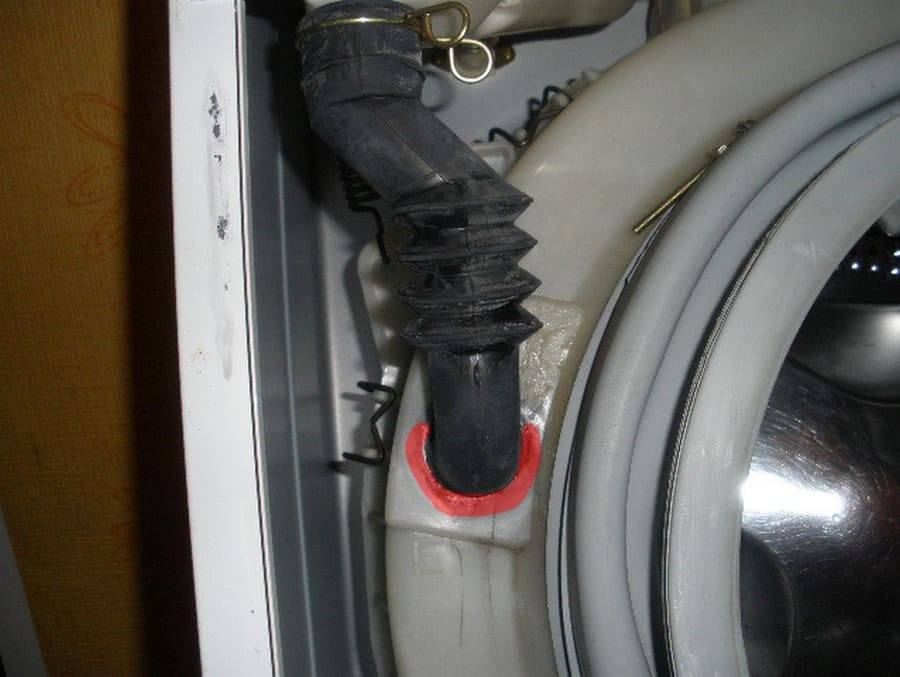 Опасность поломки, связанной с патрубком, состоит в том, что вода может выливаться не наружу, а течь внутри стиральной машинки.