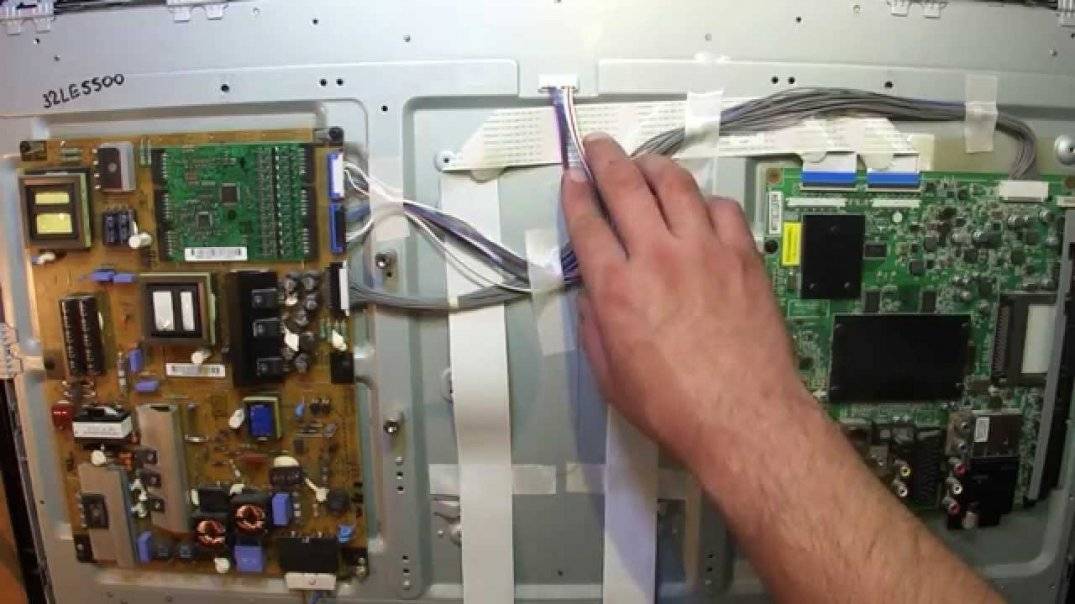 - Разберите телевизор, протрите матрицу с внутренней стороны. Делать это нужно аккуратно, пользуясь инструкцией по разборке, чтобы не повредить шлейфы.