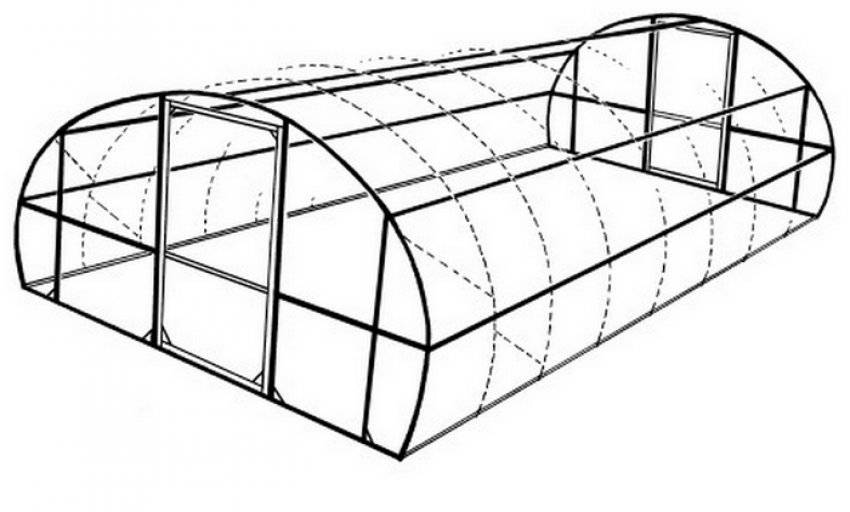 - в комплект входят арки из профильной трубы размером в среднем 20 на 20 мм., и толщиной 1,2 мм., две двери, две форточки для проветривания и торцевые части (разборные или неразборные);