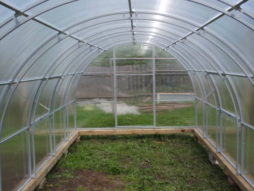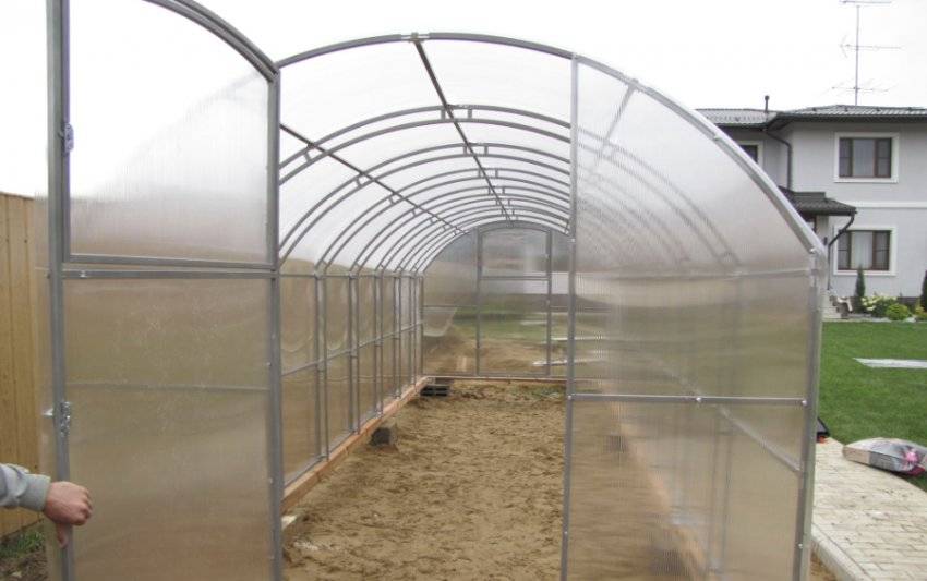 - некоторые модели могут поставляться с тонкими профильными трубами — это снижает стоимость теплицы, однако негативно сказывается на её прочности и долговечности.