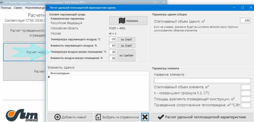 Запускаем «Расчет удельной теплозащитной характеристики здания»: