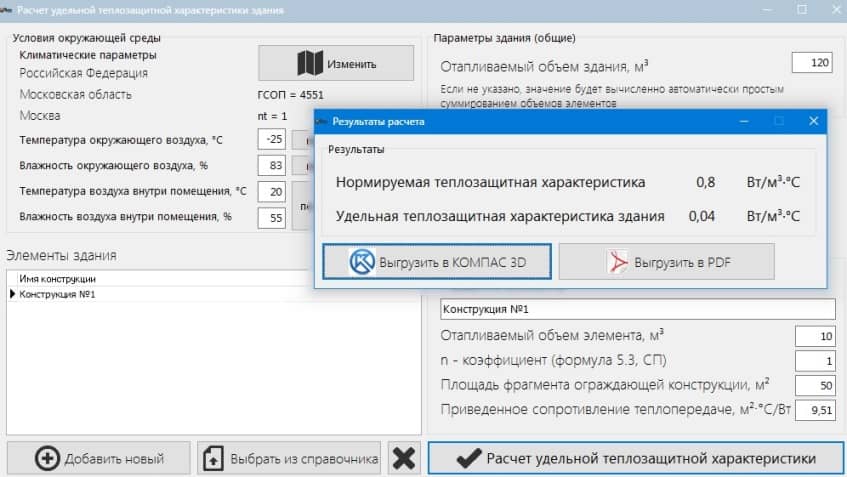 - Нажать кнопку «Расчет удельной теплозащитной характеристики».
