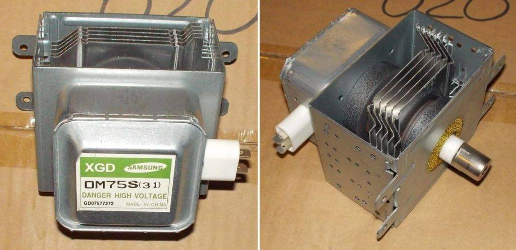 Сердцем микроволновки называют магнетрон, энергия которого преобразовывается в тепло. Такой принцип работы доступен за счёт анодно-накального стабилизатора (трансформатора). Корпус электронного прибора помещён в специальный пластинчатый радиатор, который постоянно обдувается вентилятором. Чтобы деталь не перегрелась, её оснащают специальным термопредохранителем. В первых микроволновках именно магнетрон забирал львиную долю стоимости. Однако, со временем, цена стала доступной, после чего было запущено массовое производство.