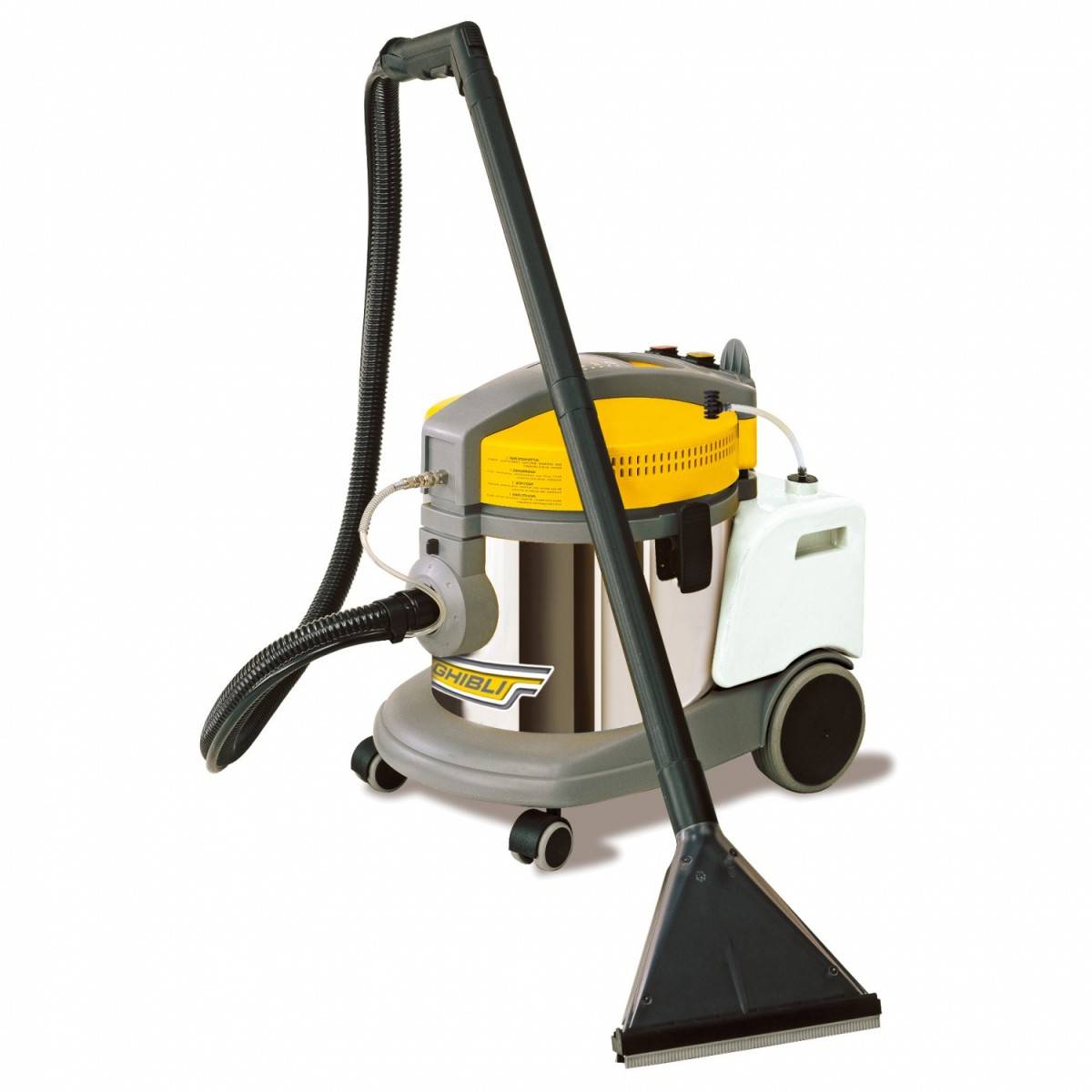 Этот агрегат класса M, для уборки большого пространства, поэтому вместимость бака достигает 80 литров. Собирает как сухой мусор, так и жидкость. Мощность пылесоса напрямую зависит от того, сколько работает турбин встроенных в агрегат. В данной модели их две и они могут работать как вместе, так и по одиночке.