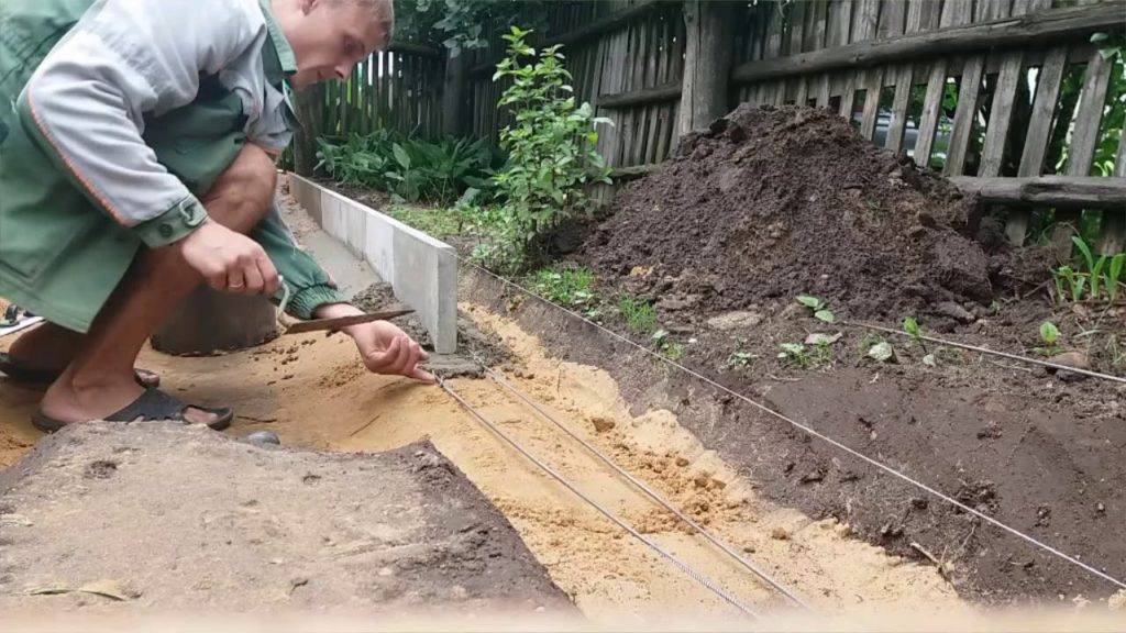 До 50% от габаритов бордюра скрывается под слоем земли. Грунт необходимо тщательно утрамбовать для повышения прочности основания, устойчивости конструктивного решения.