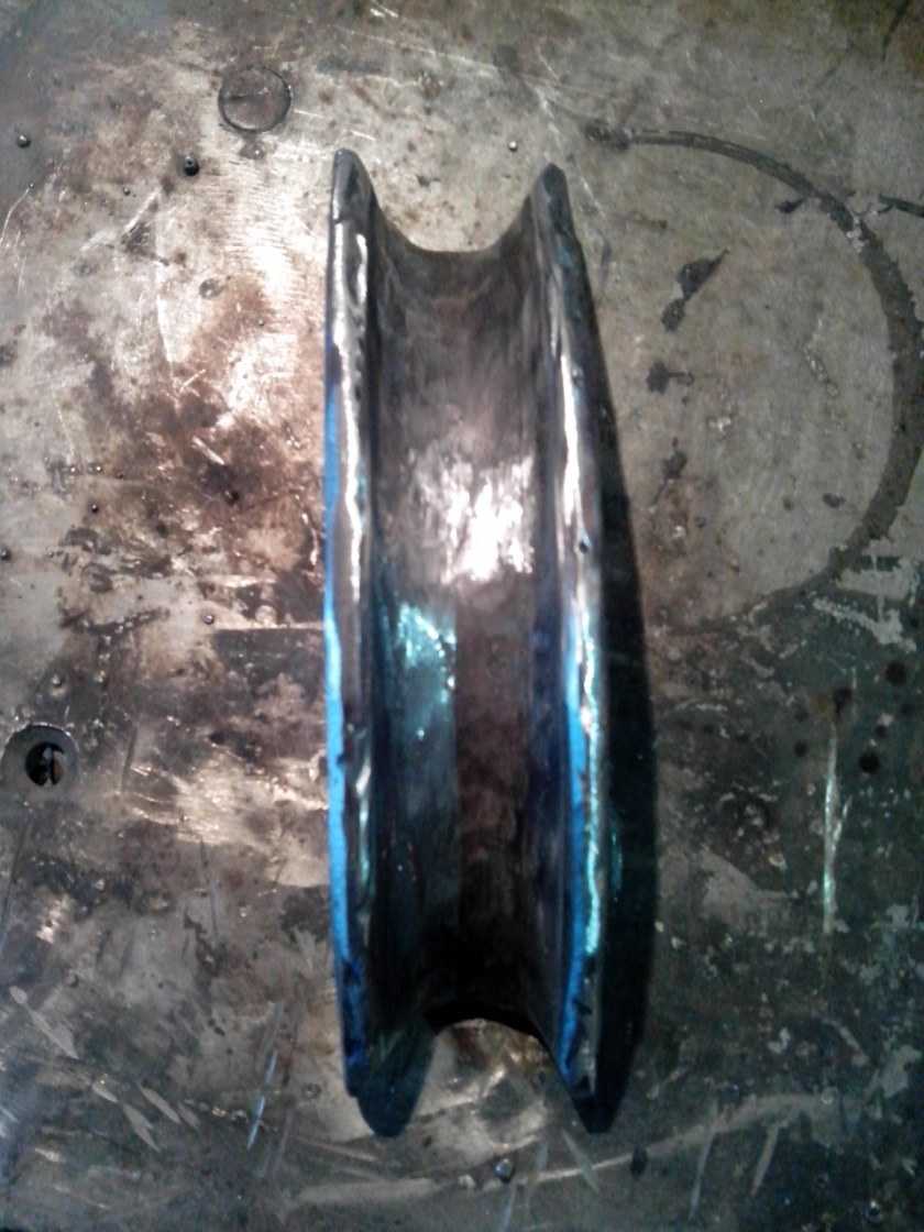 - Далее на токарном станке вытачиваются обоймы для подшипников внутри роликов и к опоре вертикально приваривается два отрезка уголка высотой 10-15 см.