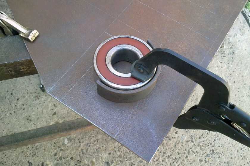 - Чтобы вал не был расположен слишком близко возле основания, следует подшипники приваривать на обрезки прямоугольной трубы по 5 см.