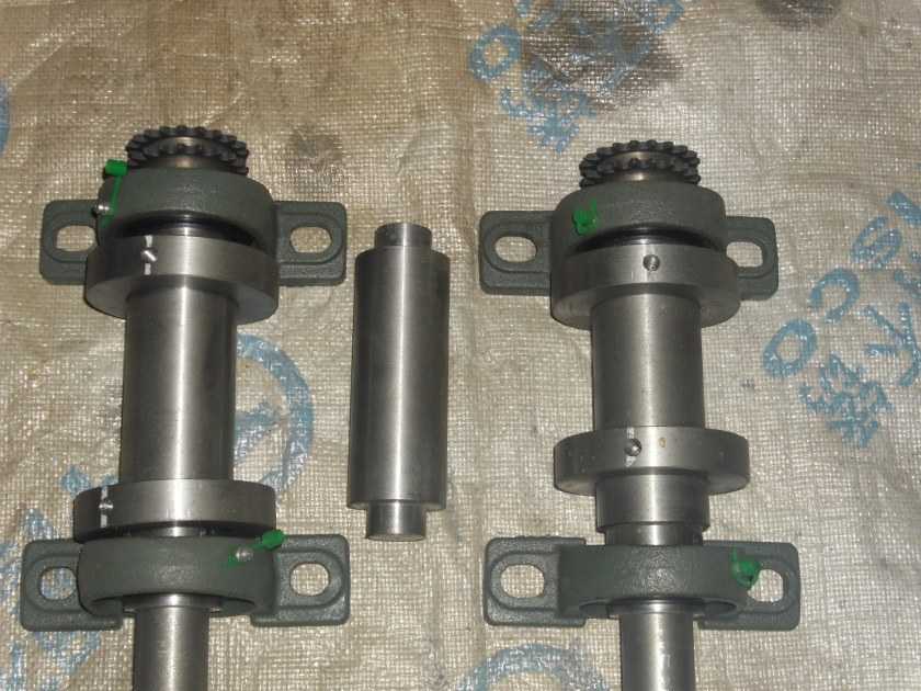 - Два вала с подшипниками располагаются на одинаковой высоте, а третий (центральный) приваривается с помощью прямоугольной трубки выше на 15-20 см.