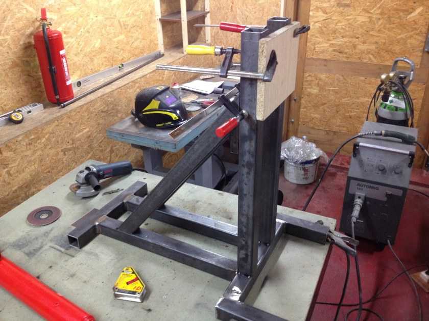 Процесс изготовления такого трубогиба выглядит следующим образом. Две автомобильные ступицы с поворотным кулаком или выточенными валами прикручиваются или привариваются к станине, чтобы они могли вращаться вокруг своей оси.